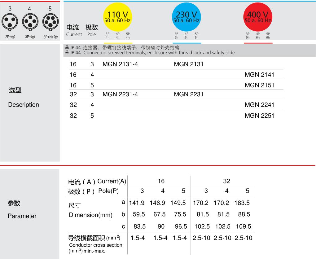 16A32A IP44分體式快速連接器