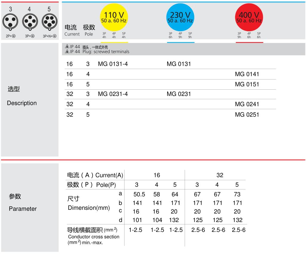 16A32A 一體式IP44插頭