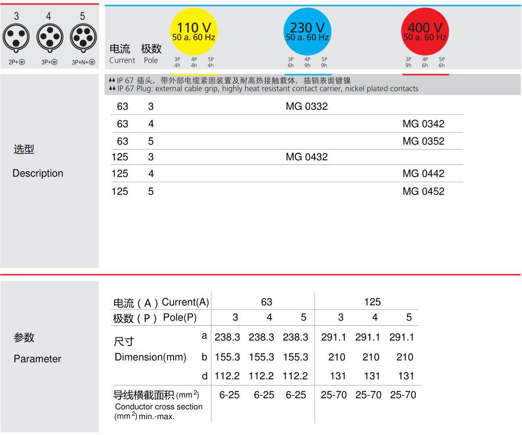 63A IP67一體式插頭